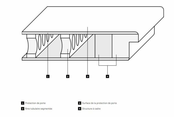 | Dimensions de vantail (sans feuillure) | 604 – 704 – 804 – 904 – 1004 – 1104 – 1204 mm |