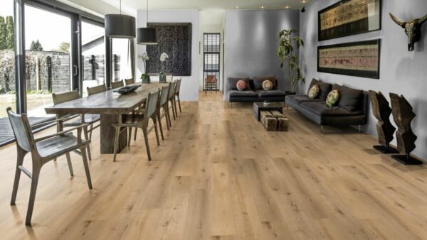 Les sols LVT KAHRS allient innovation et design avec une résistance optimale. Grâce à leur revêtement céramique et leur noyau SPC (70 % minéral, 30 % vinyle), ils offrent une stabilité et une durabilité accrues.